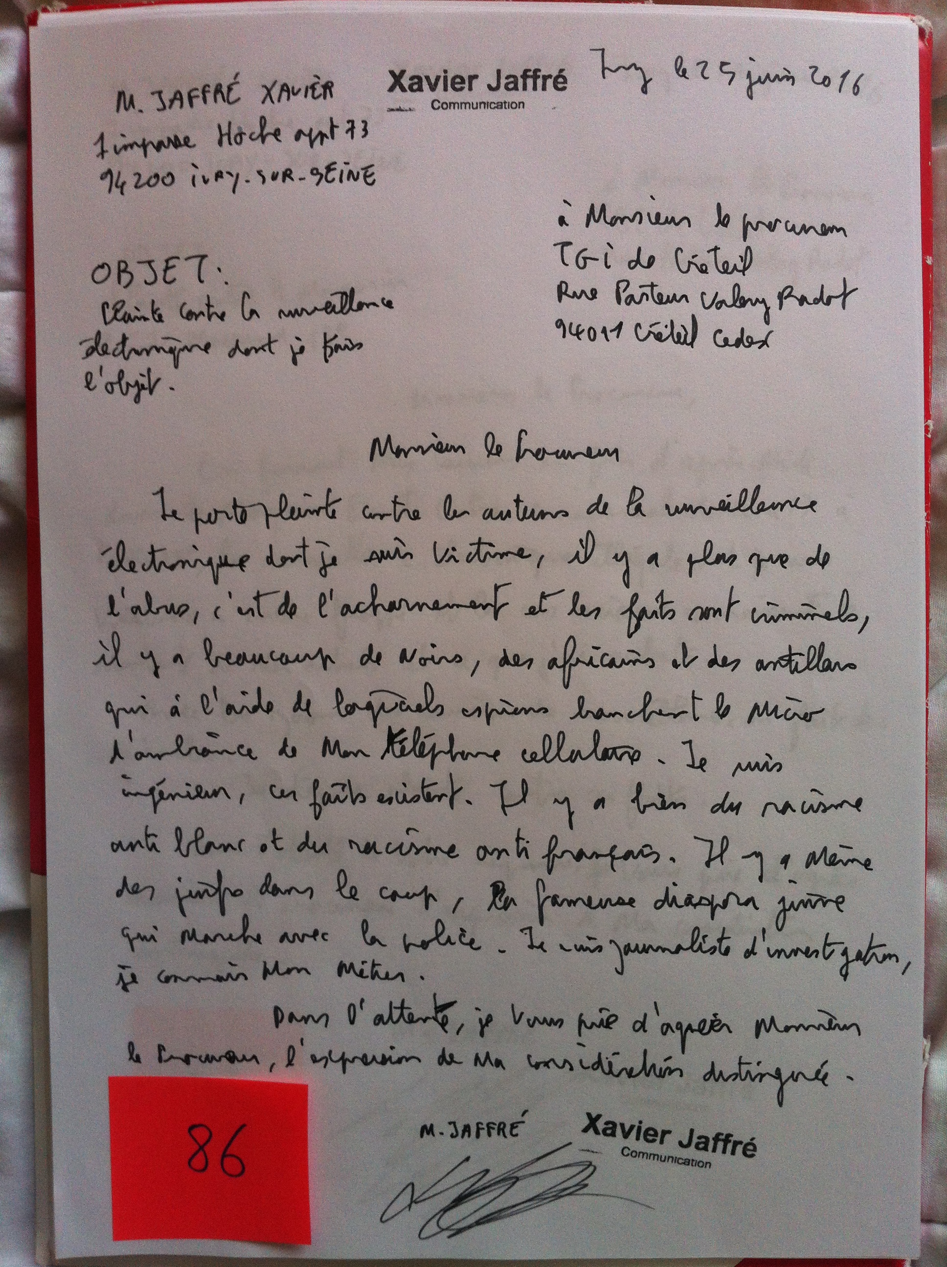 Voici mes plaintes numérotées contre le trafic d’influence des loges franc-maçonniques de Créteil à Ivry sur Seine dont je suis victime.