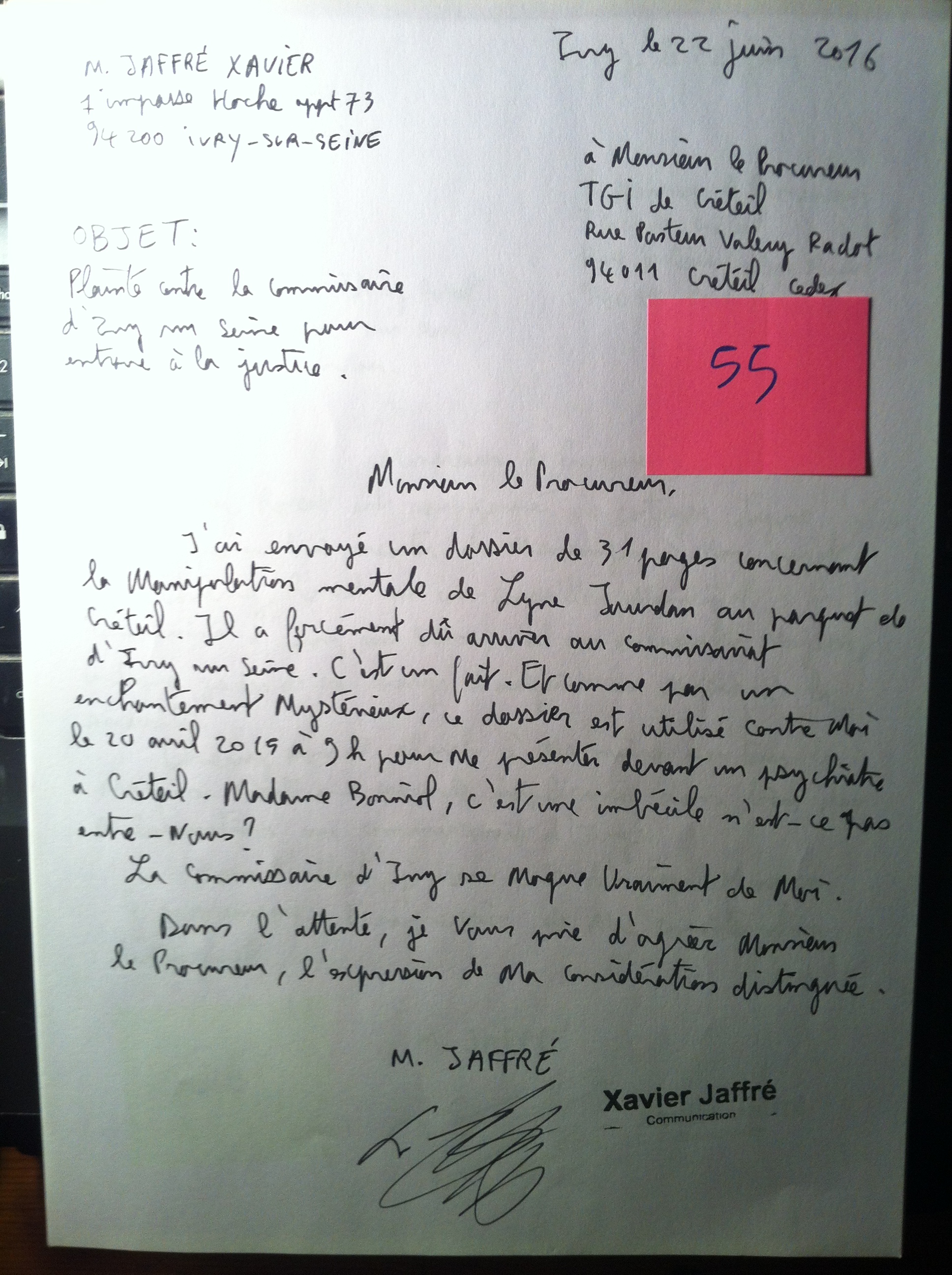 plainte contre le commissaire pour entrave à la justice