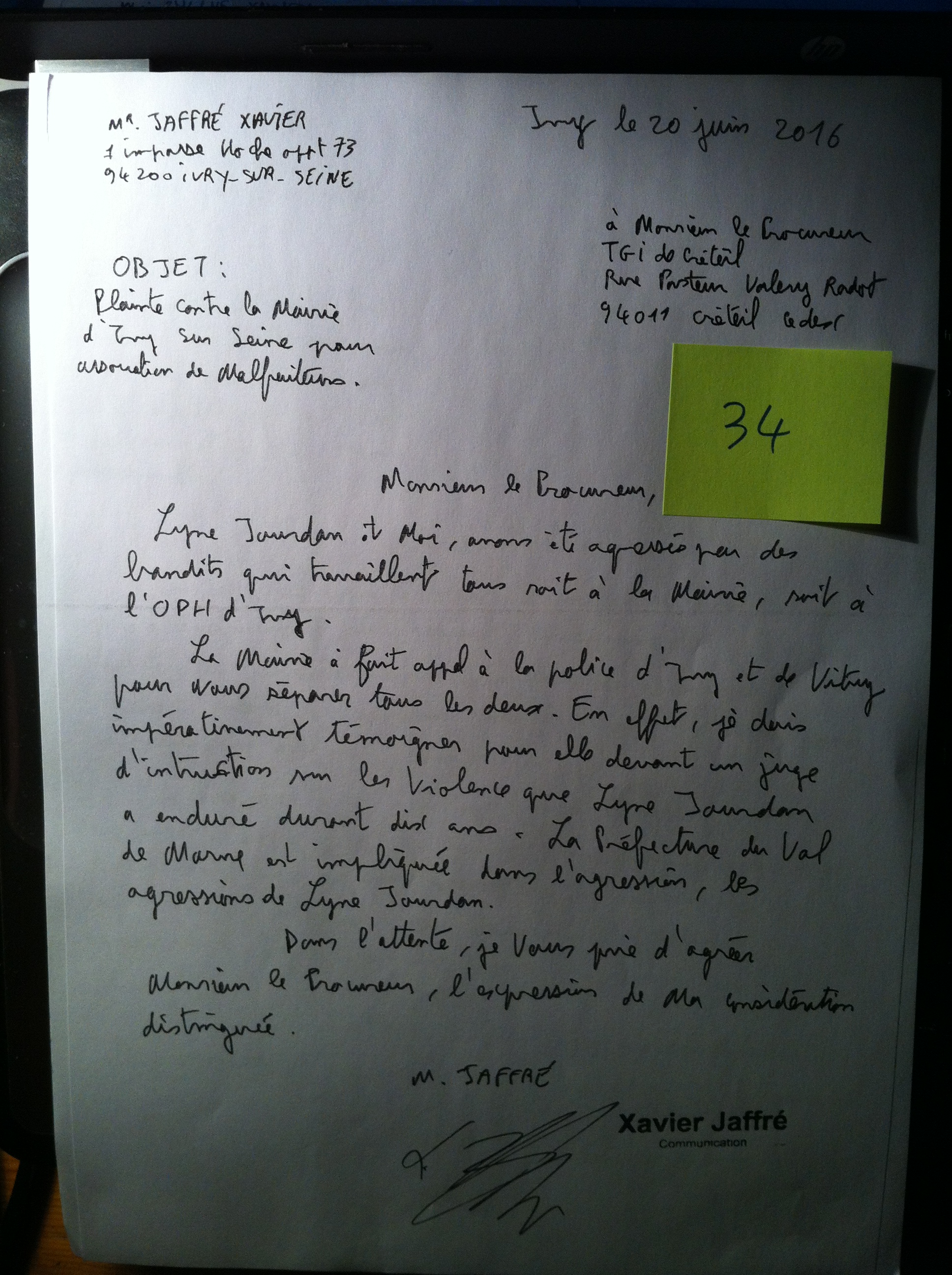 Plainte contre le maire d’Ivy sur Seine pour association de malfaiteurs.